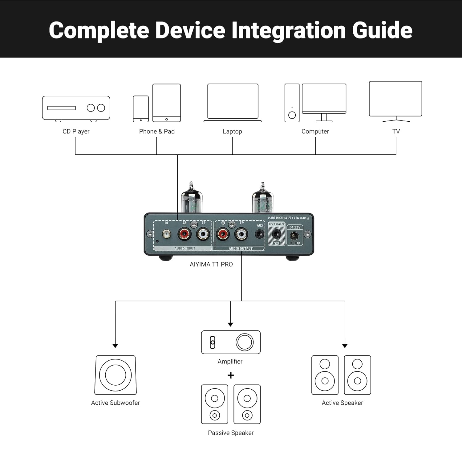 Supported devices: mobile phones, tablets, computers, MP3, TVs, etc. This tube preamplifier does not support phono.