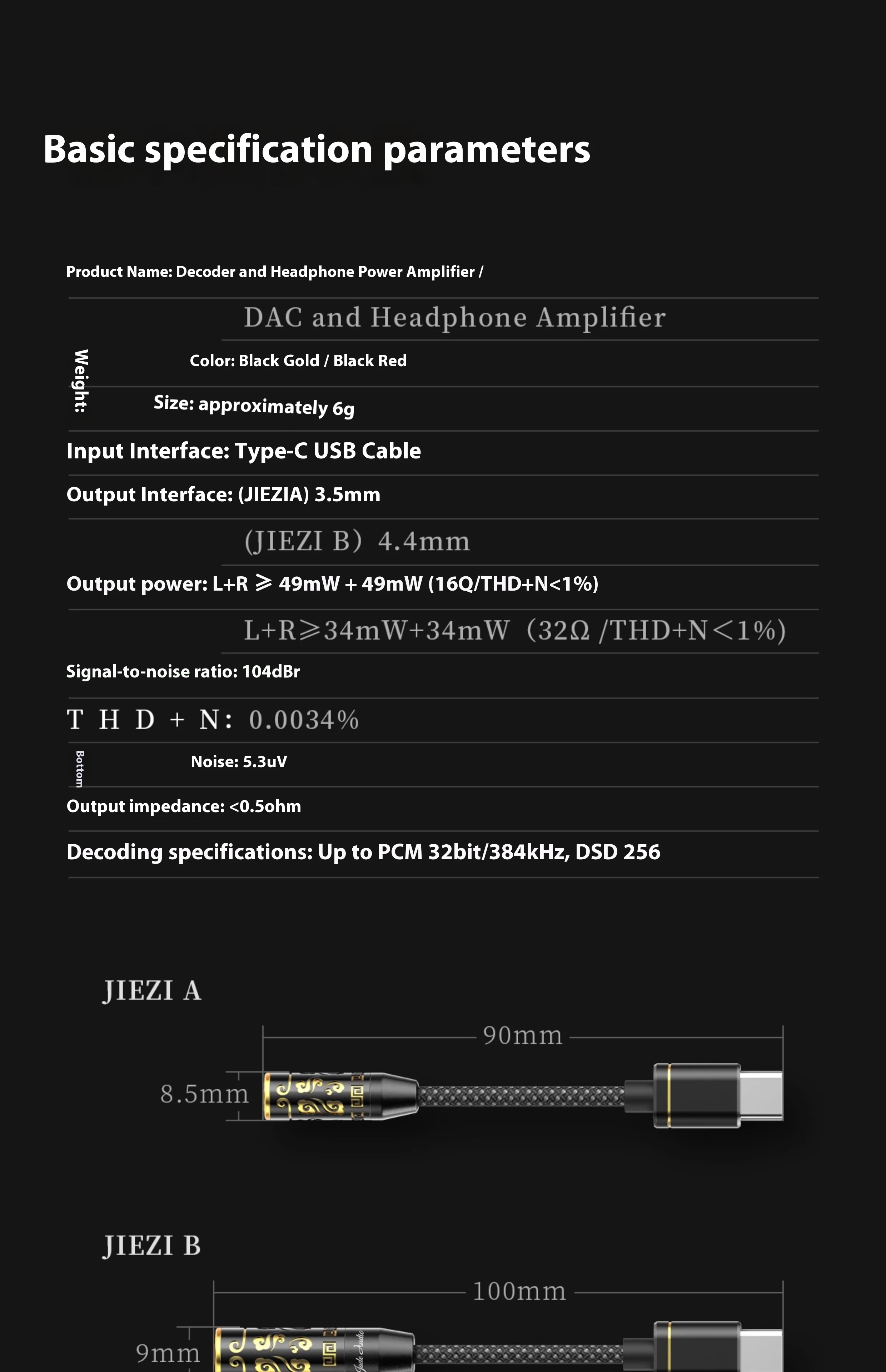 • Output interface: (JIEZIA) 3.5mm, (JIEZI B) 4.4mm